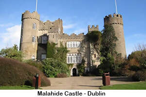 Your tour departs at 2:00 PM from Dunboyne Castle Hotel. Start your vacation with a visit to Malahide Castle, first built in 1185 and filled with medieval artifacts. Enjoy a welcome drink with your group before dinner at your hotel. (D)